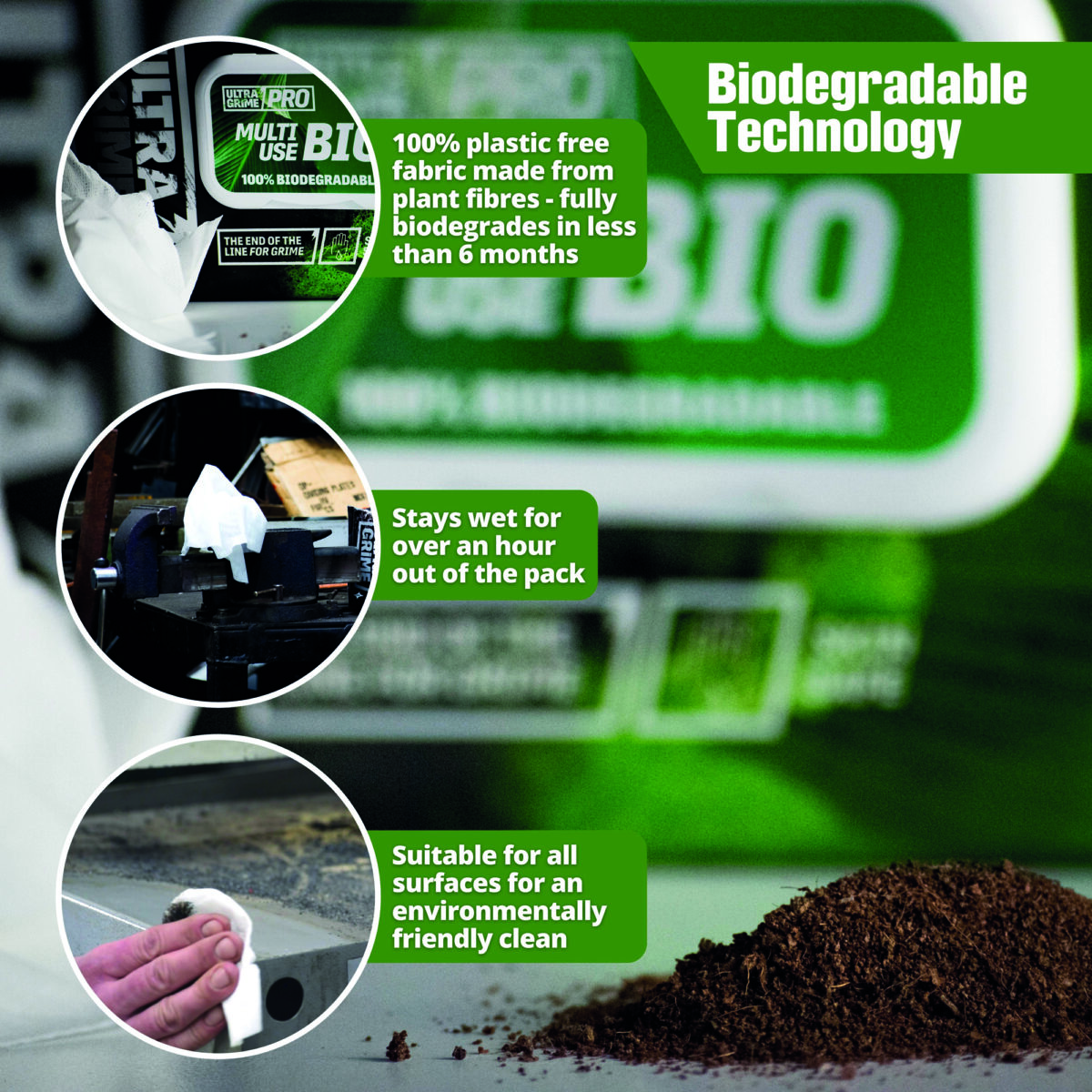 Tyto ubrousky jsou ideální pro široké spektrum profesionálů včetně dekoratérů, instalatérů, mechaniků a mnoha dalších, stejně jako pro použití v pečovatelských službách, nemocnicích, sociálním bydlení a vzdělávacích zařízeních. UltraGrime® Pro Bio Clothwipes nabízí praktické a ekologické řešení pro každodenní úklidové výzvy, podporující udržitelný způsob života bez kompromisů v čistotě a efektivitě.