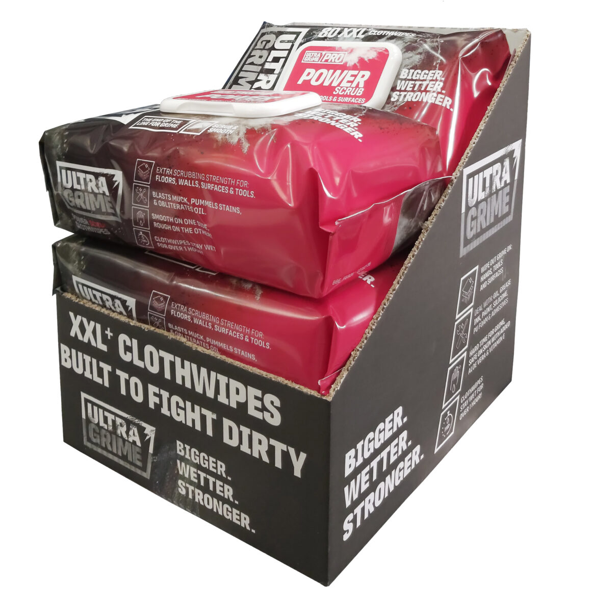 Přípravek UltraGrime Power Scrub je opravdu výkonný. Snadno odstraníte odolnou, rozemletou mastnotu, špínu a nečistoty – tyto utěrky mají texturovanou stranu pro větší drhnutí.