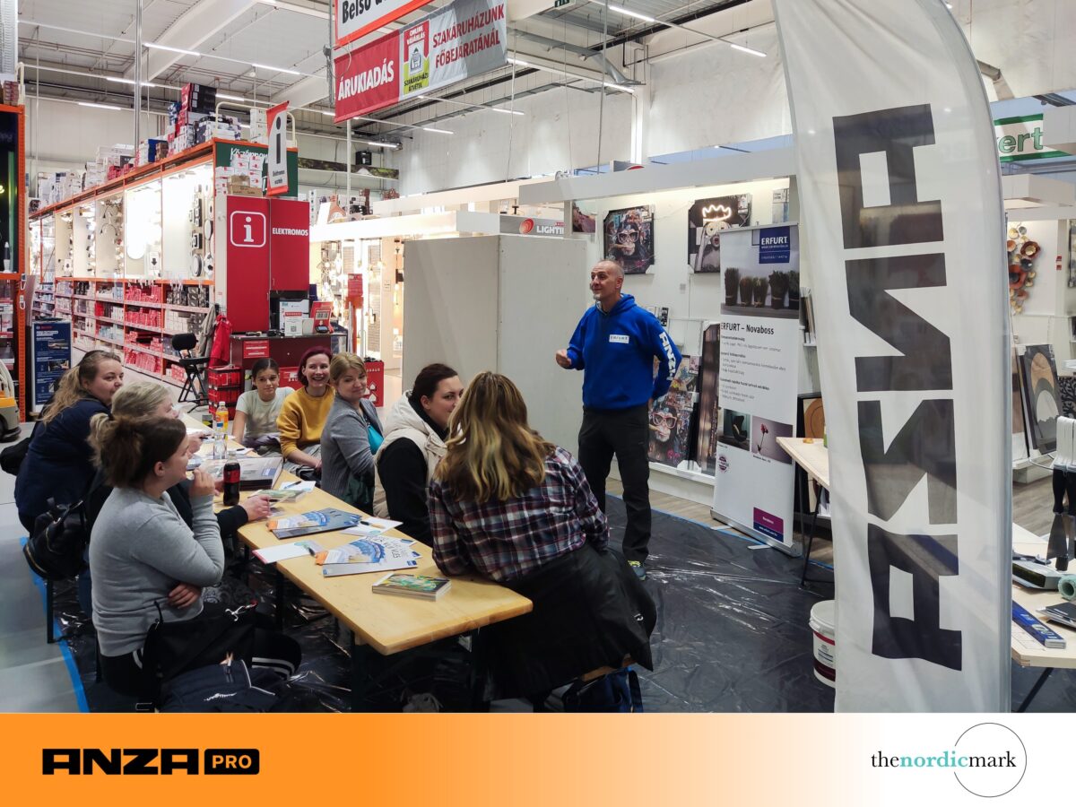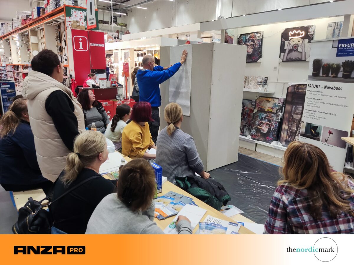 Thenordicmark KFT was delighted to participate again this year in the hugely popular Bauhaus Women’s Night event series, which took place in Maglód, Szigetszentmiklós, and Dunakeszi. The aim of the program was to provide women with inspiration and practical knowledge about the various stages of home renovation—from laying laminate flooring to wallpapering and silicone replacement—without exam pressure and critical "male glances." At the thenordicmark presentations, participants were able to learn the steps of wallpapering live, with a special emphasis on priming, handling joints, and creating a flawless surface.